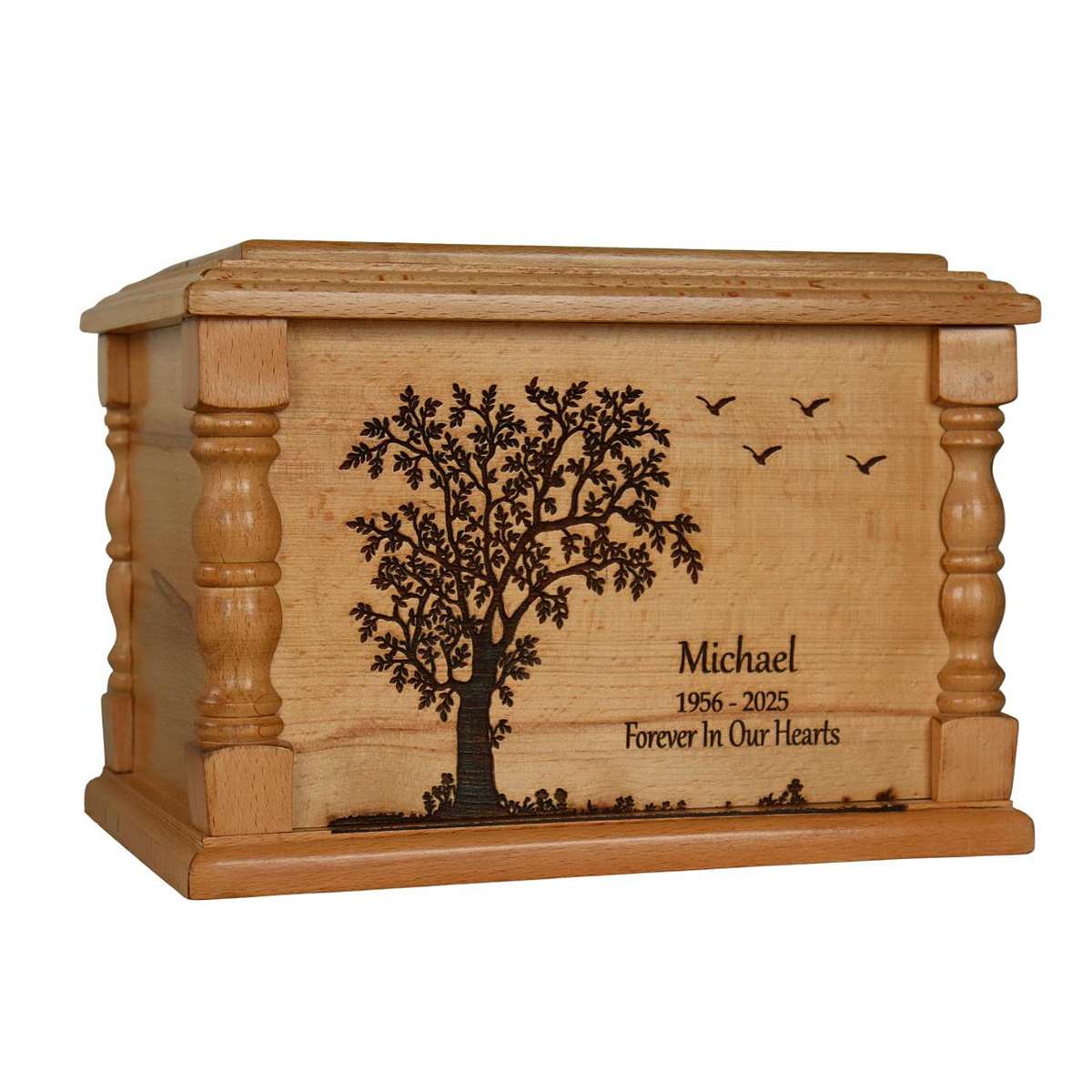 Tree of Life Engraved Wooden Urn - A Symbol of Life, Love & Connection